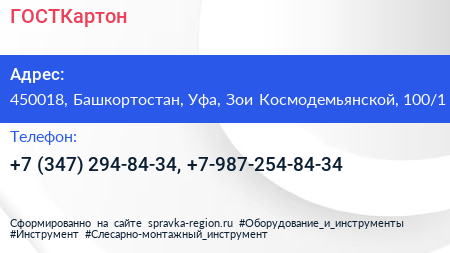 ГОСТКартон по адресу 450018, Башкортостан, Уфа, Зои Космодемьянской, 100/1 в дальнейшем Организация, размещена в следующих категориях: