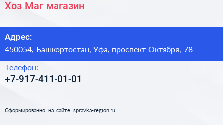 Хоз Маг, магазин по адресу 450054, Башкортостан, Уфа, проспект Октября, 78 в дальнейшем Организация, размещена в следующих категориях: