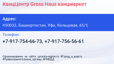 КанцЦентр & Gross Haus, канцмаркет по адресу 450032, Башкортостан, Уфа, Кольцевая, 65/1 в дальнейшем Организация, размещена в следующих категориях: