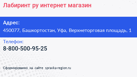 Лабиринт.ру, интернет-магазин по адресу 450077, Башкортостан, Уфа, Верхнеторговая площадь, 1 в дальнейшем Организация, размещена в следующих категориях: