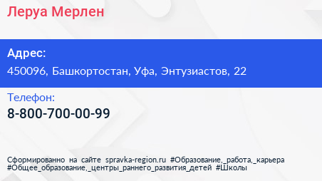 Леруа Мерлен по адресу 450096, Башкортостан, Уфа, Энтузиастов, 22 в дальнейшем Организация, размещена в следующих категориях:
