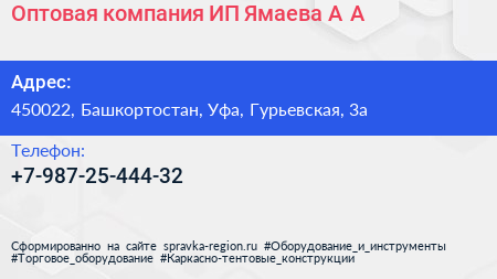Оптовая компания, ИП Ямаева А.А. по адресу 450022, Башкортостан, Уфа, Гурьевская, 3а в дальнейшем Организация, размещена в следующих категориях: