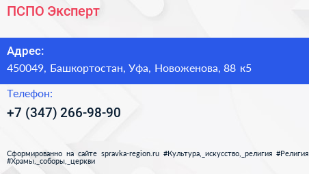 ПСПО-Эксперт по адресу 450049, Башкортостан, Уфа, Новоженова, 88 к5 в дальнейшем Организация, размещена в следующих категориях: