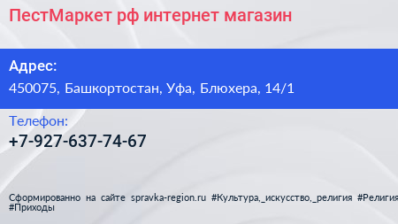 ПестМаркет.рф, интернет-магазин по адресу 450075, Башкортостан, Уфа, Блюхера, 14/1 в дальнейшем Организация, размещена в следующих категориях: