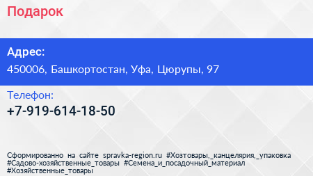 Подарок по адресу 450006, Башкортостан, Уфа, Цюрупы, 97 в дальнейшем Организация, размещена в следующих категориях: