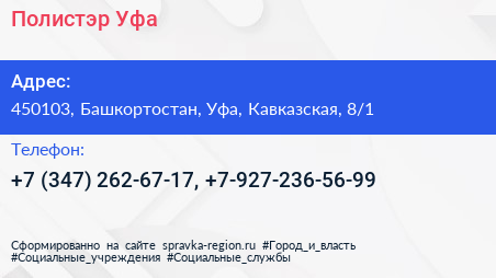 Полистэр Уфа по адресу 450103, Башкортостан, Уфа, Кавказская, 8/1 в дальнейшем Организация, размещена в следующих категориях: