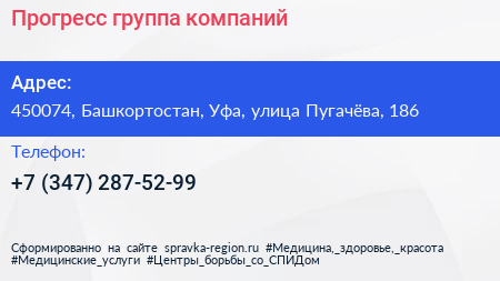 Прогресс, группа компаний по адресу 450074, Башкортостан, Уфа, улица Пугачёва, 186 в дальнейшем Организация, размещена в следующих категориях: