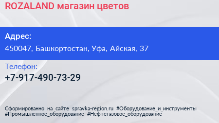 ROZALAND, магазин цветов по адресу 450047, Башкортостан, Уфа, Айская, 37 в дальнейшем Организация, размещена в следующих категориях:
