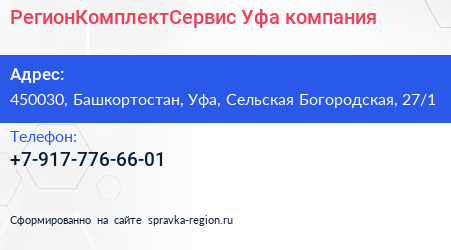 РегионКомплектСервис-Уфа, компания по адресу 450030, Башкортостан, Уфа, Сельская Богородская, 27/1 в дальнейшем Организация, размещена в следующих категориях: