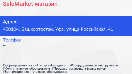 SaleMarket, магазин по адресу 450104, Башкортостан, Уфа, улица Российская, 41 в дальнейшем Организация, размещена в следующих категориях: