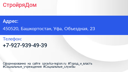 СтройряДом по адресу 450520, Башкортостан, Уфа, Объездная, 23 в дальнейшем Организация, размещена в следующих категориях: