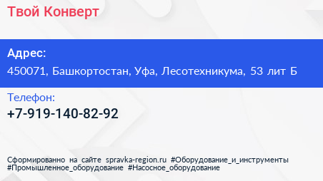 Твой Конверт по адресу 450071, Башкортостан, Уфа, Лесотехникума, 53 лит Б в дальнейшем Организация, размещена в следующих категориях: