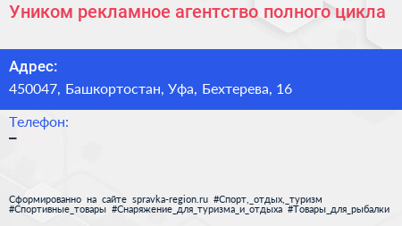 Уником, рекламное агентство полного цикла по адресу 450047, Башкортостан, Уфа, Бехтерева, 16 в дальнейшем Организация, размещена в следующих категориях: