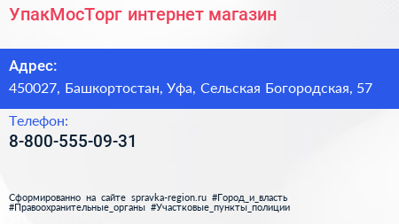 УпакМосТорг, интернет-магазин по адресу 450027, Башкортостан, Уфа, Сельская Богородская, 57 в дальнейшем Организация, размещена в следующих категориях: