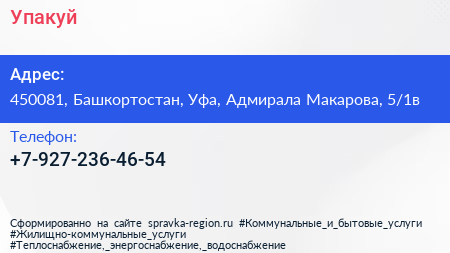 Упакуй по адресу 450081, Башкортостан, Уфа, Адмирала Макарова, 5/1в в дальнейшем Организация, размещена в следующих категориях: