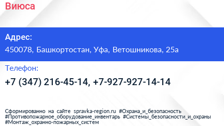 Виюса по адресу 450078, Башкортостан, Уфа, Ветошникова, 25а в дальнейшем Организация, размещена в следующих категориях: