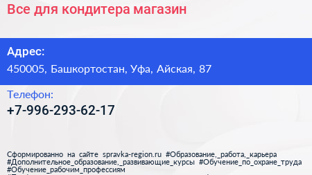 Все для кондитера, магазин по адресу 450005, Башкортостан, Уфа, Айская, 87 в дальнейшем Организация, размещена в следующих категориях: