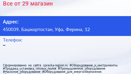 Все от 29, магазин по адресу 450039, Башкортостан, Уфа, Ферина, 12 в дальнейшем Организация, размещена в следующих категориях: