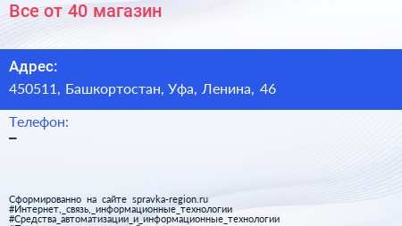 Все от 40, магазин по адресу 450511, Башкортостан, Уфа, Ленина, 46 в дальнейшем Организация, размещена в следующих категориях: