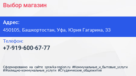 Адрес: Башкортостан, Уфа, Дёмская, 33а