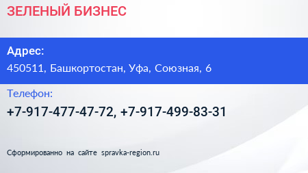 ЗЕЛЕНЫЙ БИЗНЕС по адресу 450511, Башкортостан, Уфа, Союзная, 6 в дальнейшем Организация, размещена в следующих категориях: