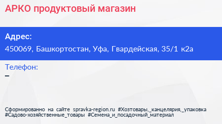 АРКО, продуктовый магазин по адресу 450069, Башкортостан, Уфа, Гвардейская, 35/1 к2а в дальнейшем Организация, размещена в следующих категориях: