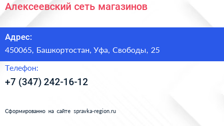 Алексеевский, сеть магазинов по адресу 450065, Башкортостан, Уфа, Свободы, 25 в дальнейшем Организация, размещена в следующих категориях: