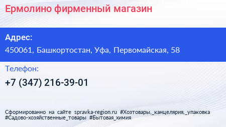 Ермолино, фирменный магазин по адресу 450061, Башкортостан, Уфа, Первомайская, 58 в дальнейшем Организация, размещена в следующих категориях: