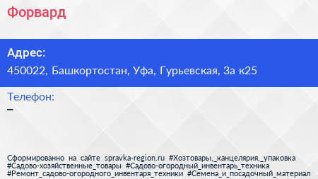 Форвард по адресу 450022, Башкортостан, Уфа, Гурьевская, 3а к25 в дальнейшем Организация, размещена в следующих категориях: