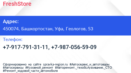 FreshStore по адресу 450074, Башкортостан, Уфа, Геологов, 53 в дальнейшем Организация, размещена в следующих категориях: