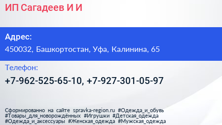 ИП Сагадеев И.И. по адресу 450032, Башкортостан, Уфа, Калинина, 65 в дальнейшем Организация, размещена в следующих категориях: