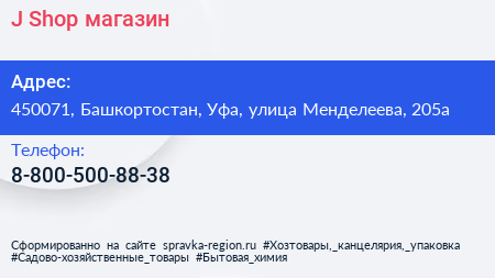 J. Shop, магазин по адресу 450071, Башкортостан, Уфа, улица Менделеева, 205а в дальнейшем Организация, размещена в следующих категориях: