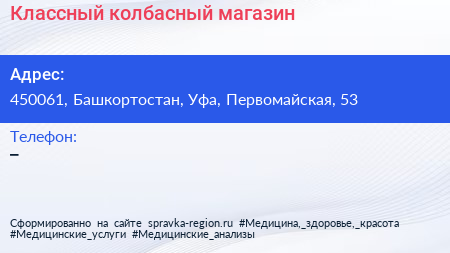 Классный колбасный, магазин по адресу 450061, Башкортостан, Уфа, Первомайская, 53 в дальнейшем Организация, размещена в следующих категориях: