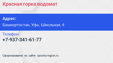 Красная горка, водомат по адресу Башкортостан, Уфа, Школьная, 4 в дальнейшем Организация, размещена в следующих категориях: