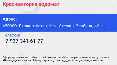 Красная горка, водомат по адресу 450080, Башкортостан, Уфа, Степана Злобина, 42 к1 в дальнейшем Организация, размещена в следующих категориях: