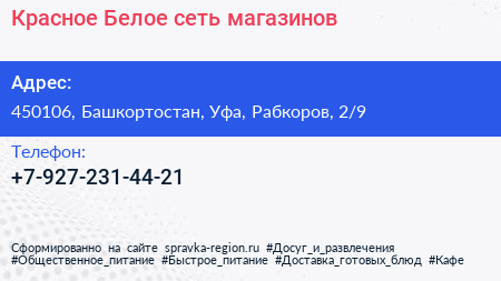 Красное & Белое, сеть магазинов по адресу 450106, Башкортостан, Уфа, Рабкоров, 2/9 в дальнейшем Организация, размещена в следующих категориях: