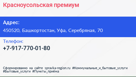 Красноусольская премиум по адресу 450520, Башкортостан, Уфа, Серебряная, 70 в дальнейшем Организация, размещена в следующих категориях: