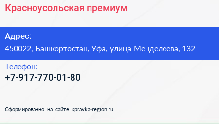 Красноусольская премиум по адресу 450022, Башкортостан, Уфа, улица Менделеева, 132 в дальнейшем Организация, размещена в следующих категориях: