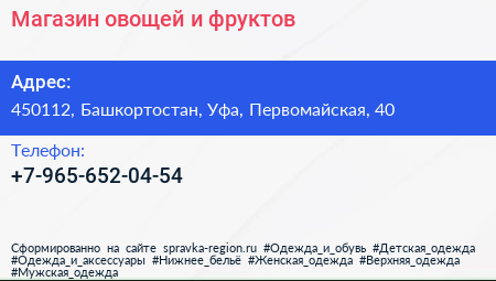 Магазин овощей и фруктов по адресу 450112, Башкортостан, Уфа, Первомайская, 40 в дальнейшем Организация, размещена в следующих категориях: