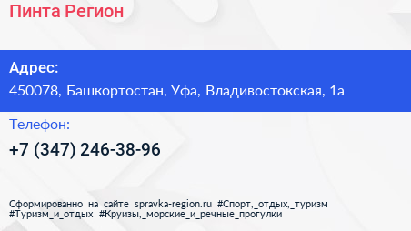 Пинта-Регион по адресу 450078, Башкортостан, Уфа, Владивостокская, 1а в дальнейшем Организация, размещена в следующих категориях: