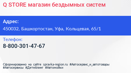 Q STORE, магазин бездымных систем по адресу 450032, Башкортостан, Уфа, Кольцевая, 65/1 в дальнейшем Организация, размещена в следующих категориях: