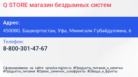Q STORE, магазин бездымных систем по адресу 450080, Башкортостан, Уфа, Минигали Губайдуллина, 6 в дальнейшем Организация, размещена в следующих категориях: