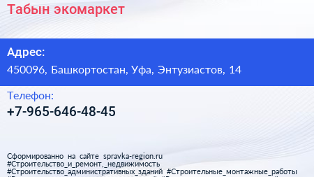 Табын, экомаркет по адресу 450096, Башкортостан, Уфа, Энтузиастов, 14 в дальнейшем Организация, размещена в следующих категориях: