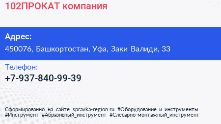 102ПРОКАТ, компания по адресу 450076, Башкортостан, Уфа, Заки Валиди, 33 в дальнейшем Организация, размещена в следующих категориях: