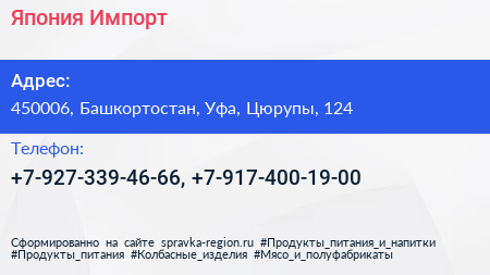 Япония Импорт по адресу 450006, Башкортостан, Уфа, Цюрупы, 124 в дальнейшем Организация, размещена в следующих категориях: