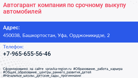 Автогарант, компания по срочному выкупу автомобилей по адресу 450038, Башкортостан, Уфа, Орджоникидзе, 2 в дальнейшем Организация, размещена в следующих категориях:
