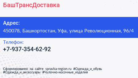 БашТрансДоставка по адресу 450078, Башкортостан, Уфа, улица Революционная, 96/4 в дальнейшем Организация, размещена в следующих категориях: