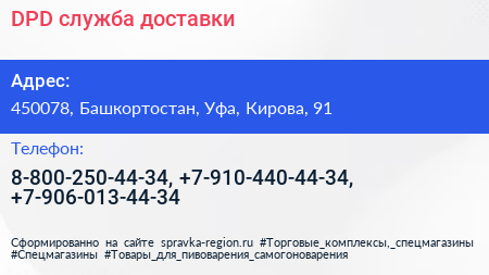 DPD, служба доставки по адресу 450078, Башкортостан, Уфа, Кирова, 91 в дальнейшем Организация, размещена в следующих категориях: