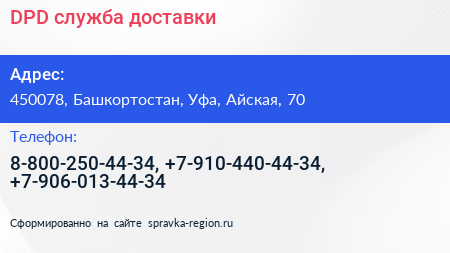 DPD, служба доставки по адресу 450078, Башкортостан, Уфа, Айская, 70 в дальнейшем Организация, размещена в следующих категориях: