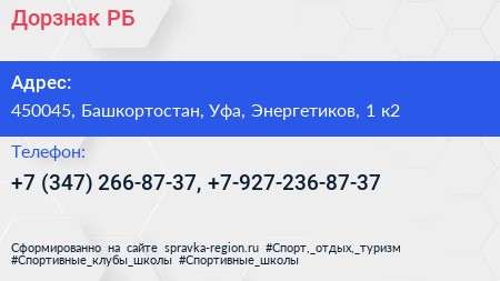 Дорзнак РБ по адресу 450045, Башкортостан, Уфа, Энергетиков, 1 к2 в дальнейшем Организация, размещена в следующих категориях: